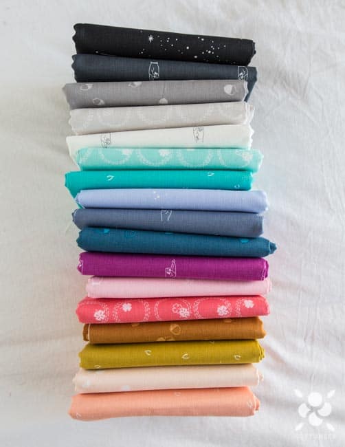 Lucky Charms fabric by Ghazal Razavi for Figo is a collection of adorable charms presented as a basic fabric collection. From clovers, to wishbones, to fingers crossed, to shooting stars! This beautiful palette of modern colors can be the stars of the show or great supporting prints.