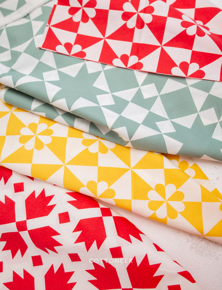 Whole cloth quilts made a whole lot easier! The Perfect Points collection brings vintage style into today with classic two-color quilt motifs from bear paws to sawtooths. Create garments, curtains, bags, and more fun projects–seamlessly. Available in a contemporary palette that nods to heirloom quilts of the past with turkey red, yellow, and green. Find Perfect Points by Whistler Studios for Windham Fabrics and more at Cottoneer Fabrics!