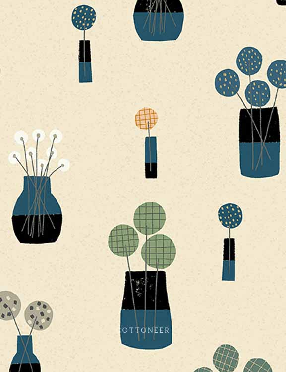 Perennial by Sarah Golden for Andover Fabrics is whimsical new fabric collection with feminine geometric details. Featuring vases of perennial flowers, scattered dots, and geometric coordinates. Perennial features an earthy palette of marigold, moss, teal, and blush. Find bundles, yardage, and individual fat quarters of Perennial by Sarah Golden at Cottoneer Fabrics!