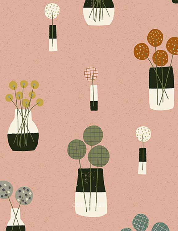 Perennial by Sarah Golden for Andover Fabrics is whimsical new fabric collection with feminine geometric details. Featuring vases of perennial flowers, scattered dots, and geometric coordinates. Perennial features an earthy palette of marigold, moss, teal, and blush. Find bundles, yardage, and individual fat quarters of Perennial by Sarah Golden at Cottoneer Fabrics!