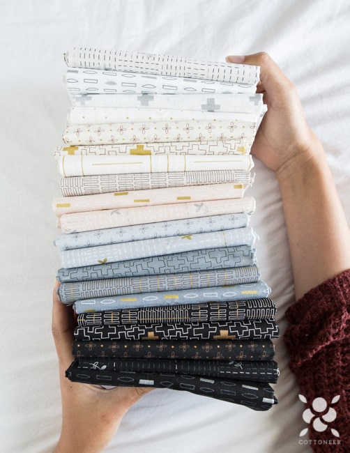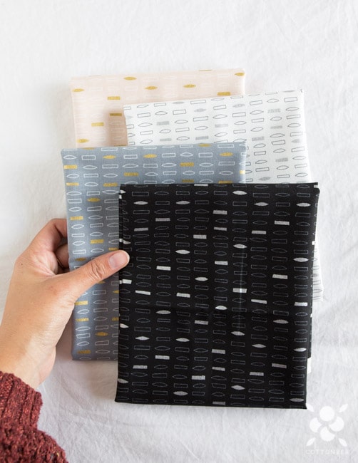 Wayside fabric by Karen Lewis is a collection of hand-drawn geometric shapes for a modern look. Made up in a palette of black and white, silver, blush, cream and a touch of metallic gold and silver!