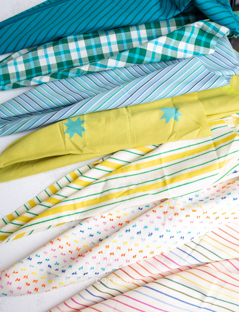 Cottoneer always recommends to handwash with mild, bleach-free detergent, and hang-dry all cotton fabrics for best results. If machine washing is your preferred method, we suggest washing in cold water with like colors on gentle cycle using a mild, bleach-free detergent. Dry on low-heat tumble setting to minimize shrinkage.