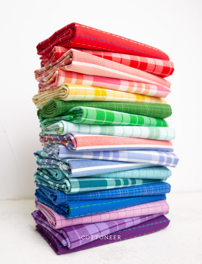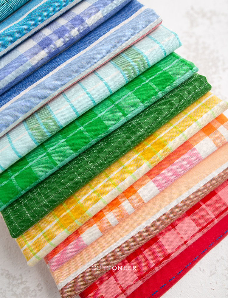 Robert Kaufman delivers a classic prints in a Kona palette we all have come to know and love. Kona Loomworks: Summer Breeze‘s mix of plaids, stripes, and grids are cozy textured wovens that work for so many types of projects. Find these and more textured wovens at Cottoneer!