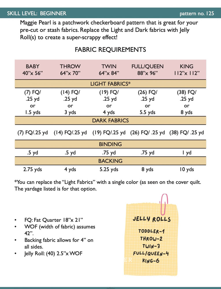 New and updated with expanded sizes and directions for yardage, fat quarters, or jelly rolls!