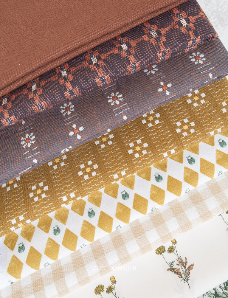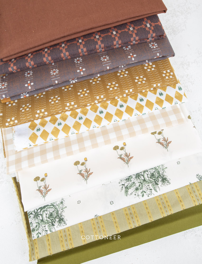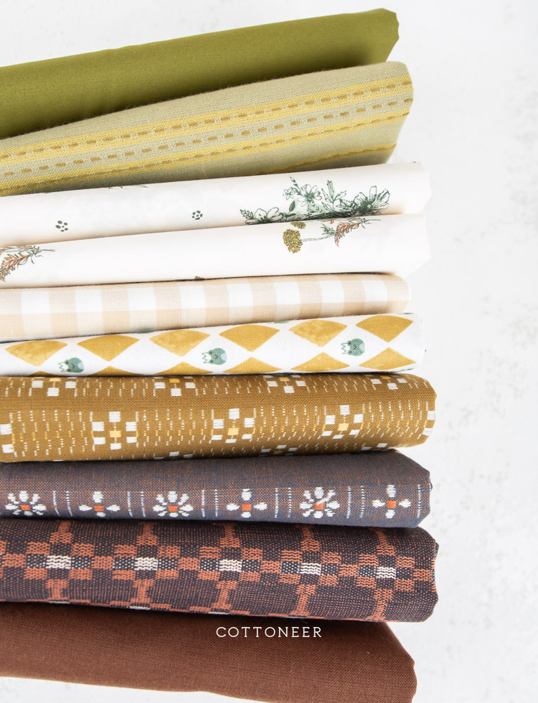 Our Mossy Grove 2.0 Bundle features a beautiful mix of wovens and regular quilt weight fabrics in an lovely array of earthy greens and browns. This bundle mixes 10 cotton fabrics to make a beautiful quilt or craft project full of great prints and texture! (Also good enough to leave on the shelf as eye candy for when inspiration strikes!) Make sure to check out all of our Cottoneer Bundles and other fabric bundles, available in fat quarters and yardage.