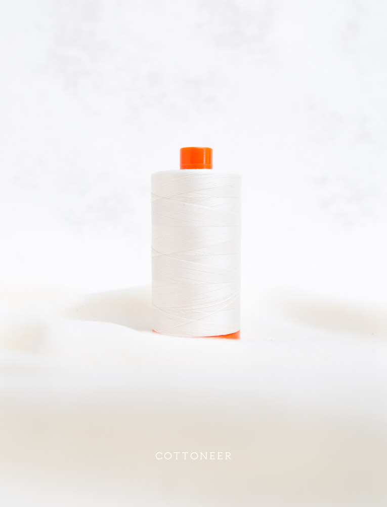 Aurifil’s 50wt/2ply thread is Aurifil’s most versatile and most popular Cotton thread. The 50wt is strong and thin, and results in remarkably flat and crisp seams. While it is wonderful for piecing, subtle quilting & topstitching, and English Paper Piecing it also works incredibly well for Needle Turn Applique, Bobbin and Machine Lace, Machine Applique (Straight Stitch, ZigZag, Blind Hem and Blanket Stitch,) Machine Embroidery, Dense Machine Quilting, Subtle Machine and Longarm Quilting, Basting, Whole Cloth and Micro Quilting, and Dense Background Designs. Needle Recommendations:
