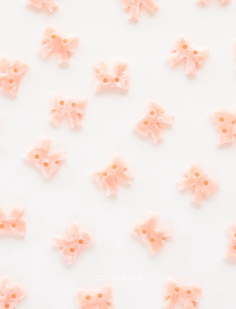 Add a playful touch with these Small Pink Bow Buttons. Made from eco-friendly cellulose acetate, their cute bow shape in a pearly pink color makes them a sweet addition to any garment or bag. Perfect for adding charm and personality to your projects. Find these and more notions at Cottoneer!